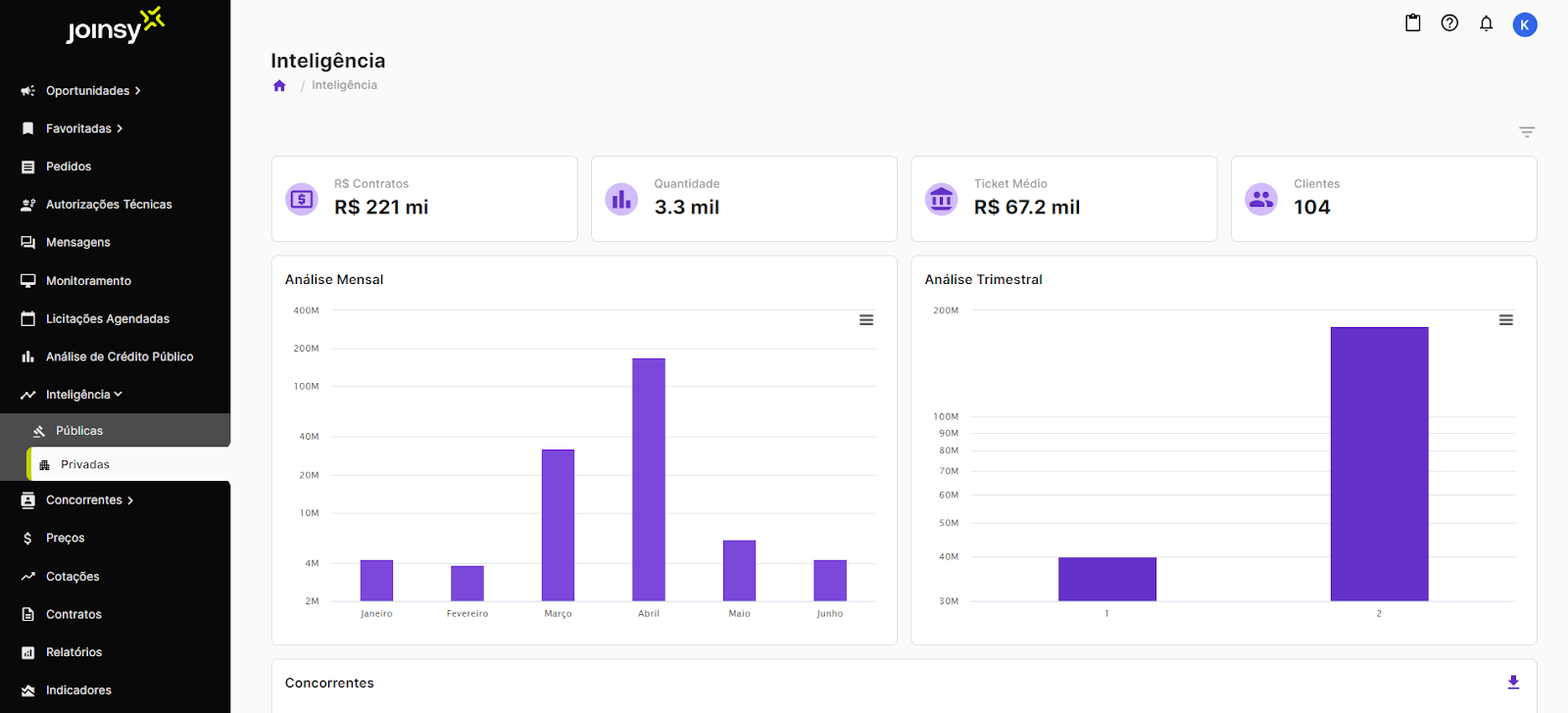 Há muitos anos, a Joinsy vem se desenvolvendo como uma ferramenta de inteligência de mercado, deixando de ser apenas um sistema de centralização de oportunidades, reunindo muita experiência neste segmento.