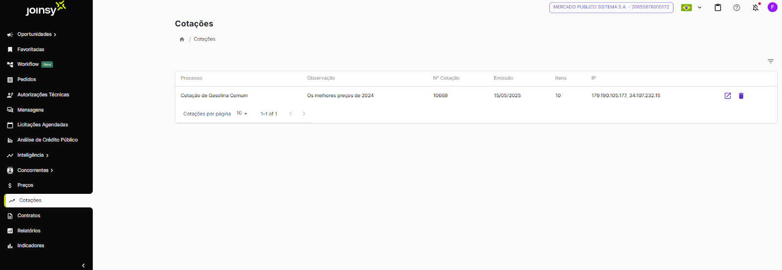 Como fazer uma cotação na Joinsy?